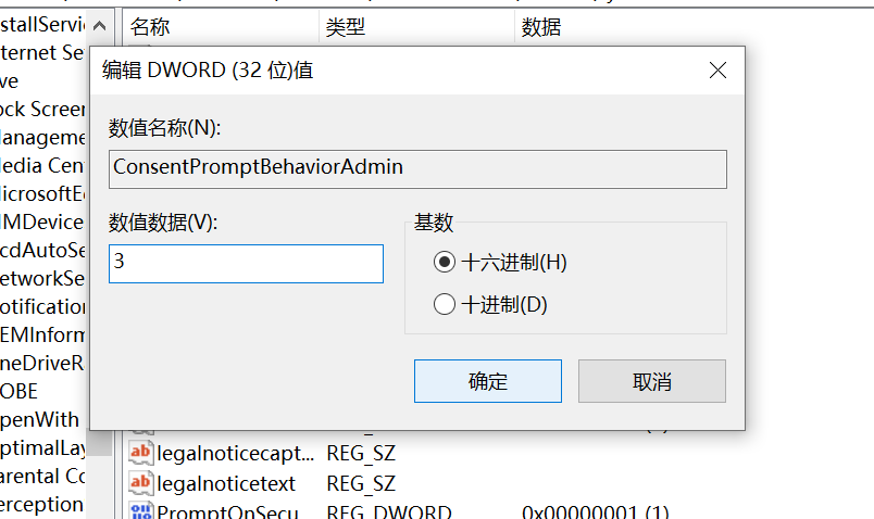 计算机\HKEY_LOCAL_MACHINE\SOFTWARE\Microsoft\Windows\CurrentVersion\Policies\System\ConsentPromptBehaviorAdmin